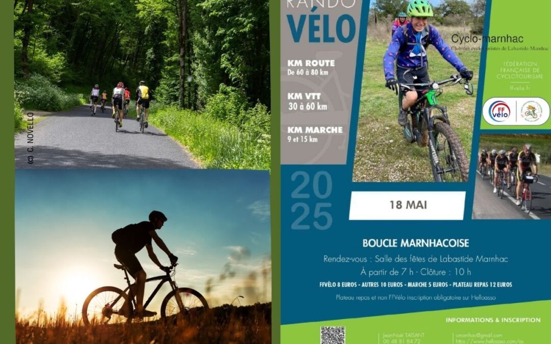 La Boucle Marnhacoise se déroulera le 18 mai. Le programme propose, pour cette édition 2025, quatre parcours VTT de 30, 39, 48 et 61 km sur les secteurs de Trespoux, St Vincent Rive d’Olt, Cambayrac et Douelle et trois parcours route 61, 69 et 81 km entre Quercy Blanc et vallée du Lot.